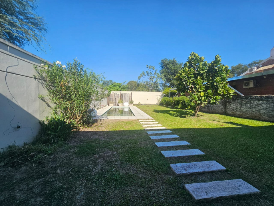 Amplia casa que consta de: 2 dormitorios, un baño en suite, un baño social, amplio living, cocina comedor, patio con parrillero techado, con pileta y garage para 2 autos.